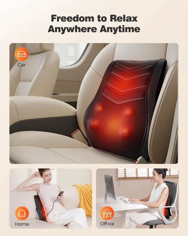 Deep kneading massage targets back muscles to ease discomfort, stiffness, and pain—perfect for work breaks or home relaxation.