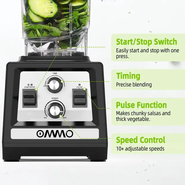 Powerful Motor for Finer CrushingOMMO blender equipped with a robust 1400W motor (1800W peak), this blender for smoothies delivers high-speed blending performance to crush ice, frozen fruits, and tough ingredients in secondsperfect for families, fitness fans, and home chefs.
