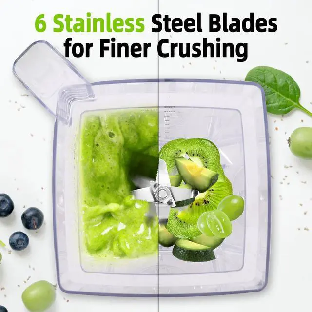 6 Stainless Steel Blades for Effortless BlendingEquipped with 6 ultra-sharp stainless steel blades, this professional blender powers through ice, frozen fruit, and tough ingredients with easedelivering smooth, consistent results every time. Built for durability and high performance.