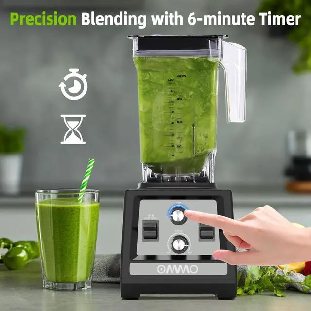 Powerful Motor for Finer CrushingOMMO smoothie blender equipped with a robust 1400W motor (1800W peak), this blender for smoothies delivers high-speed blending performance to crush ice, frozen fruits, and tough ingredients in secondsperfect for families, fitness fans, and home chefs.