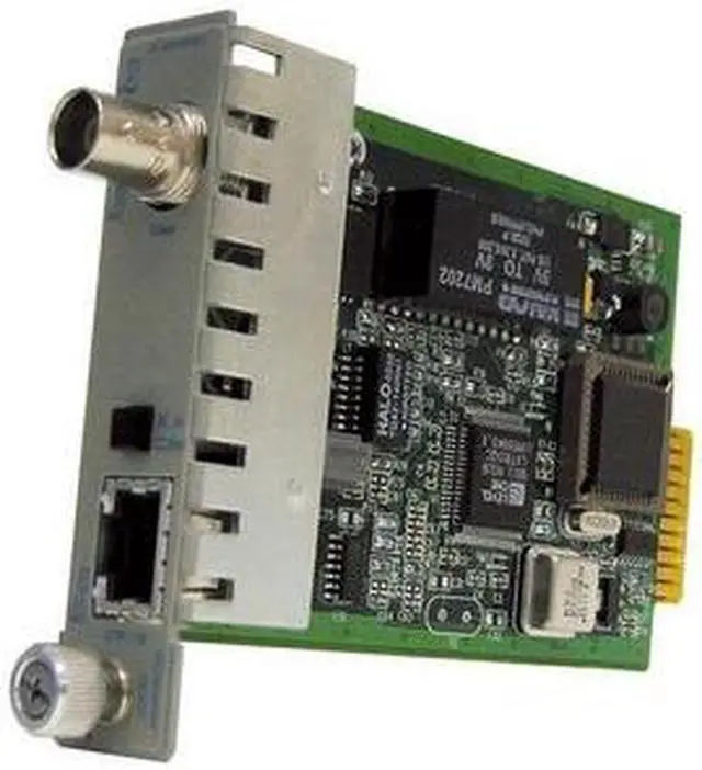 The iConverter 10T/2 is a 10Base-T to 10Base-2 media converter that converts between twisted pair (UTP) and coax LANs and joins their collision domains. The iConverter 10T/2 facilitates the connection of a coax segment to a 10Base-T hub. When using a pair of iConverter 10T/2 converters back to back, they can connect between two 10Base-T hubs via coax.