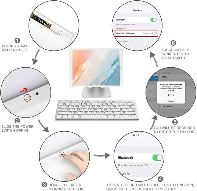 - 1. Press any key to wake the keyboard from sleep mode ( Please wait up to 3-4 seconds for the keyboard to reconnect with the device ).