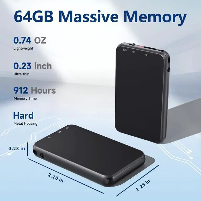| Specifications | Size: 64GB, Brand: OnceJoy, Color: Black, Format: wav, Battery_weight: 6 grams, Battery_average_life: 35 hours, Battery_cell_composition: lithium_ion, Display_size: 0.01 inches, Skip_offer: false, Item_weight: 0.74 ounces, Part_number: V15, Unspsc_code: 52161535, Manufacturer: VLL, Model_number: V15, Num_batteries_type: cr5, Num_batteries_quantity: 1, Ships_globally: true, Headphones_jack: 3.5 millimeters, Item_dimensions: 0.23 L x 1.25 W x 2.1 H inches, Lithium_battery_packaging: batteries_contained_in_equipment, Lithium_battery_energy_content: 1.11 watt_hours, Number_of_items: 1, Batteries_included: true, Batteries_required: true, Compatible_devices_0: Personal Computer, Compatible_devices_1: Smartphone, Hardware_interface: usb_c, Included_components: Digital Voice Recorder, Item_package_weight: 0.141 kilograms, Warranty_description: 1 Year, Microphone_form_factor: Built-In, Gpsr_safety_attestation: true, Has_replaceable_battery: false, Item_depth_width_height_depth: 0.23 inches, Item_depth_width_height_width: 1.25 inches, Item_depth_width_height_height: 2.1 inches, Item_package_dimensions: 1.905 L x 13.4874 W x 13.4874 H centimeters, Memory_storage_capacity: 64 GB, Contains_battery_or_cell: battery, Product_site_launch_date: 2025-01-12T08:00:00Z, Microphone_operation_mode: Stereo, Noise Cancellation, Gpsr_manufacturer_reference_gpsr_manufacturer_email_address: oulaini_us@163.com, Number_of_lithium_ion_cells: 1, Includes_rechargable_battery: true, Dsa_responsible_party_address: contact@evatmaster.com, Battery_installation_device_type: installed_in_vessel, Supplier_declared_dg_hz_regulation: storage, Regulatory_compliance_certification_value: HK2411194329-SR, Regulatory_compliance_certification_regulation_type: ul_cetrification_no, Fcc_radio_frequency_emission_compliance_registration_status: not_capable_emitting_rf_energy, Has_multiple_battery_powered_components: true, Supplier_declared_has_product_identifier_exemption: true |