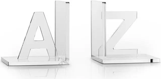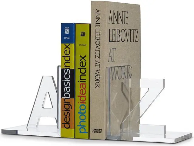 Keep your books together in style with Luxe Ultra crystal clear acrylic that is laser cut and polished to look as clear as glass. Each letter measures about 5" x 4.4" x 5.1" per letter. Set includes letters A and Z. Not sold individually.