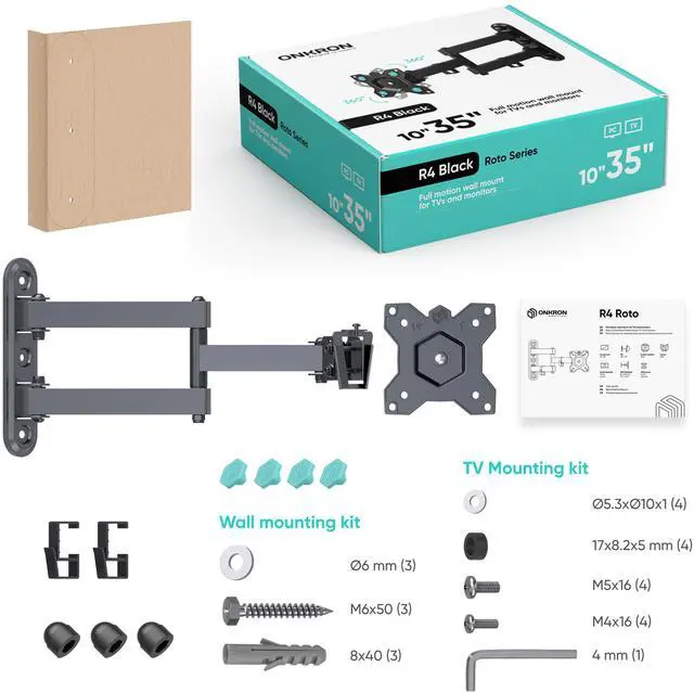Enjoy optimal viewing angles with this articulating TV mount featuring 180° swivel, ±8° tilt, and 360° rotation. You can extend the monitor arm wall mount from 3.1 to 16.5 inches from the wall: suitable for dynamic use in corner TV mount setups or gaming stations. Adjust your rotating TV wall mount for an effortless watching experience.