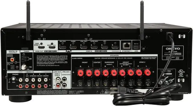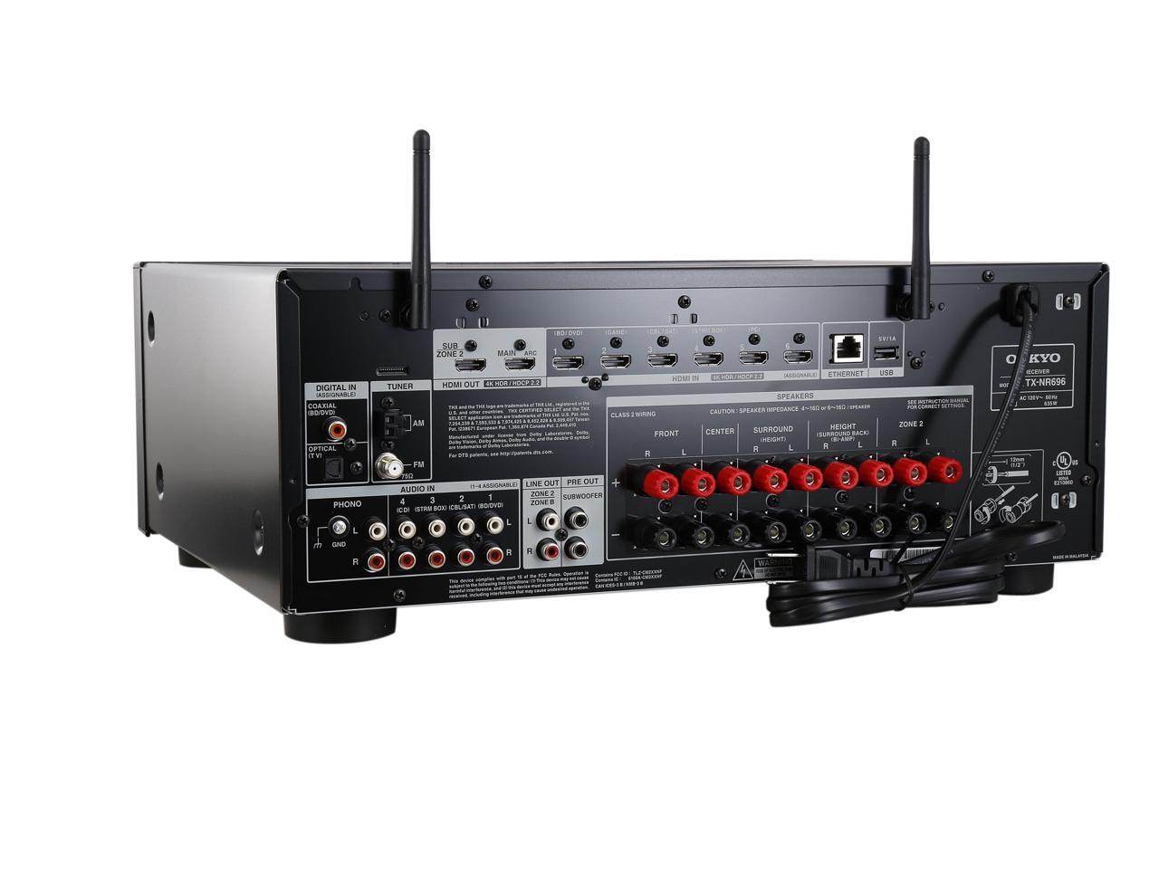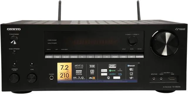 | Features | NETWORK FEATURES SMART AV Receiver with wireless multi-room audio platforms, streaming service integration, and remote app control Works with Sonos certified for the Sonos Home Sound System Chromecast built-in and voice control with the Google Assistant AirPlay 2 multi-room audio and voice control with Siri DTS Play-Fi multi-room audio via Onkyo Music Control App FlareConnect multi-zone audio with compatible components Quad-core SoC processing evolves network functions and supports high-speed 802.11ac (2x2 MIMO) Wi-Fi specification Supports Onkyo Controller remote and music streaming app Hi-Res Audio playback via network (DSD 11.2 MHz/5.6 MHz/2.8 MHz; FLAC, WAV [RIFF], AIFF, and ALAC to 192 kHz/24-bit) ADVANCED FEATURES AccuEQ Room Acoustic Calibration and AccuReflex DSP Vocal Enhancer boosts dialog audibility via remote keys or front panel Bluetooth wireless technology and Wake on Play Standby with auto input selection supporting select smart speakers Advanced Music Optimizer improves compressed audio playback Zone 2 outputs enable 7-ch Main + Zone 2 connection, 7-ch / 5.2 + Zone 2 switching, Zone 2 DAC for multi-source D/A audio distribution (including HDMI/SPDIF); output via Zone 2 and Zone 2 line-out Front/Height/Surround Back switching (layout dependent) for ambient listening in Stereo Assign Mode Zone 2/Zone B line-out (analog RCA) with Zone 2 DAC connects compatible audio systems for synced/independent D/A playback (including HDMI/SPDIF) in Main and Zone 2; connects compatible transmitters for wireless headphones One-touch volume memory-presets for A/V inputs via front panel 1080p to 4K upscaling and GUI with overlaid OSD via HDMI Crossover adjustment for each channel (40/50/60/70/80/90/100/120/150/180/200 Hz) A/V Sync Control (up to 500 ms in 5 ms steps at 48 kHz) Various standby modes and HDMI pass-through IP control for home automation systems via LAN 3-Mode display dimmer (Normal/Dim/Dimmer) Redesigned simple remote contro |