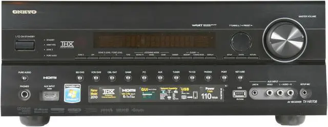 Complete your high-definition entertainment center with the luxury receiver, which has seven HDMI inputs for your Blu-ray player, gaming console, set-top box and more. The 1.4a revision HDMI connection also supports the latest 3D video. An USB port is located in the front panel for flash memory devices. The Onkyo TX-NR708 is also iPod-ready and can be connected by a separately sold dock.