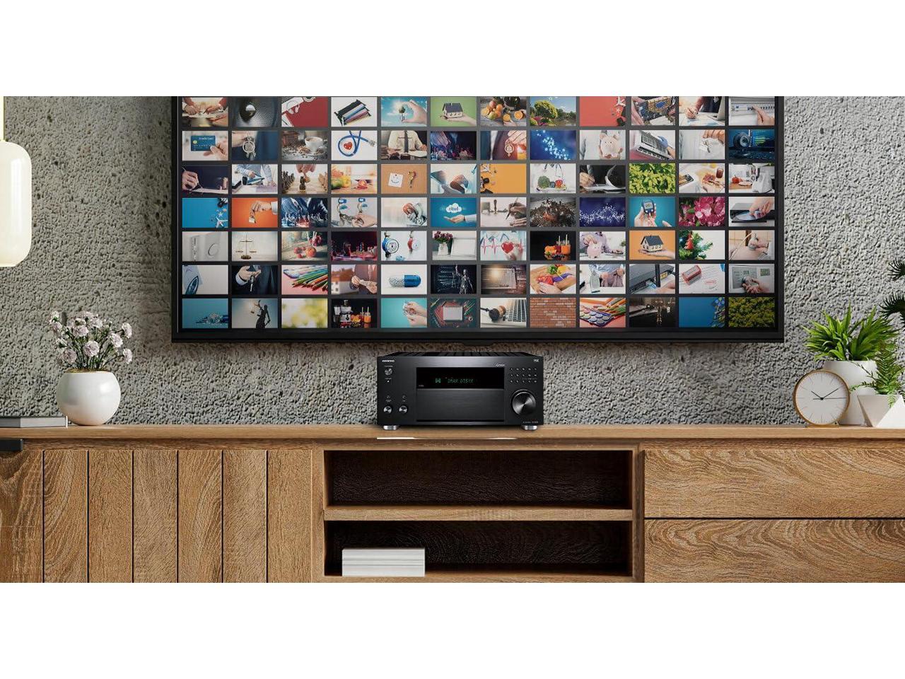 SMART AV Receiver multi-room platform with integrated streaming services, voice assistant support, and remote app control*10