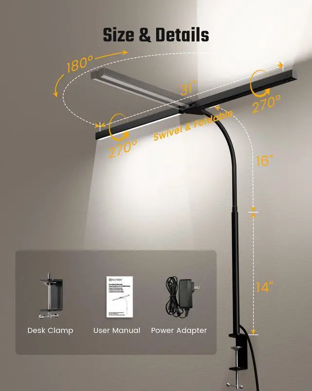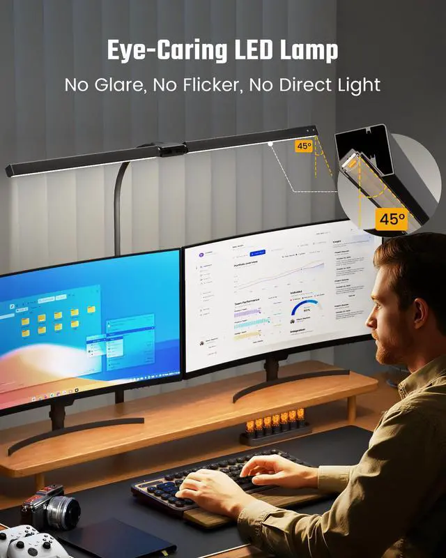 Unfold for wide 71” lighting range on the desk or fold in for focused 2X brightness. Perfect for dual monitors, large desks, or task-specific lighting