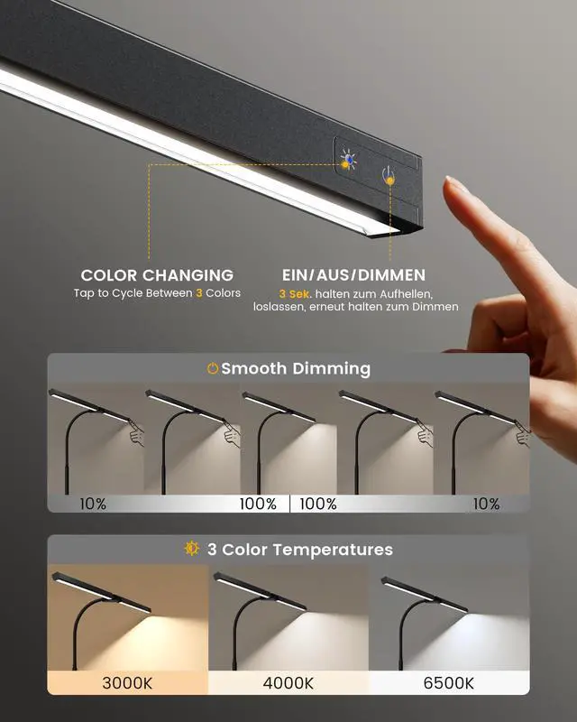 Adjust the height and angle freely with the 360° gooseneck. Easily position the light from 22” to 28” to suit reading, typing, or crafting tasks.