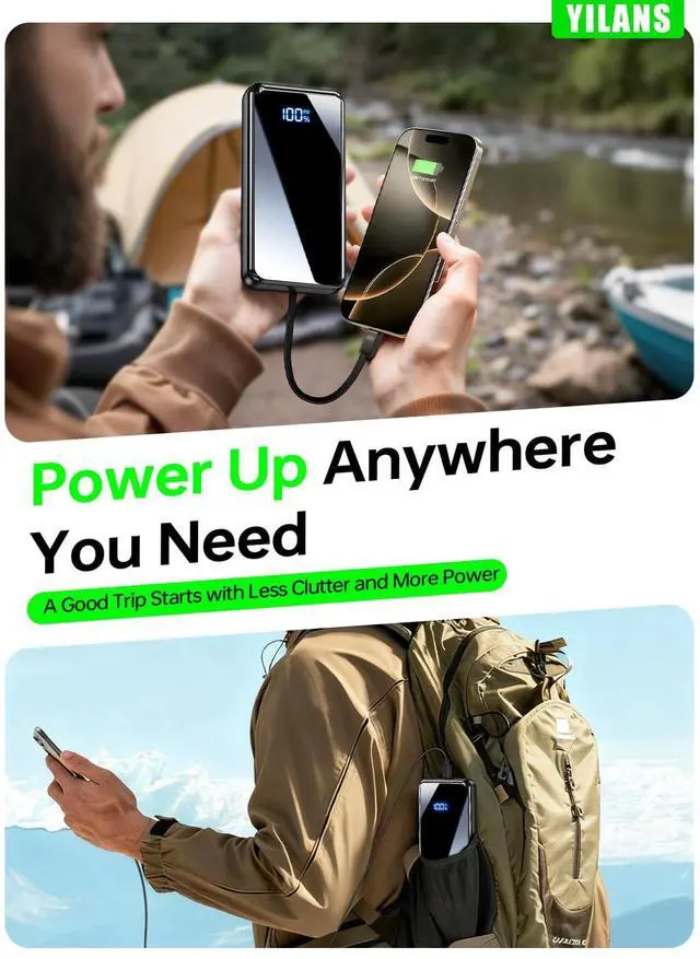 Travel-Ready with Smart Power Management: This travel phone charger always know your exact power status at a glance with the precision LED display, while its compact size (1.13×2.89×5.61 inches, 1.11 lbs) is engineered for effortless portability-slips effortlessly into your pocket or bag,nsuring you're never without power from commute to adventure