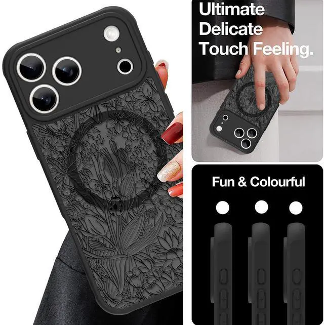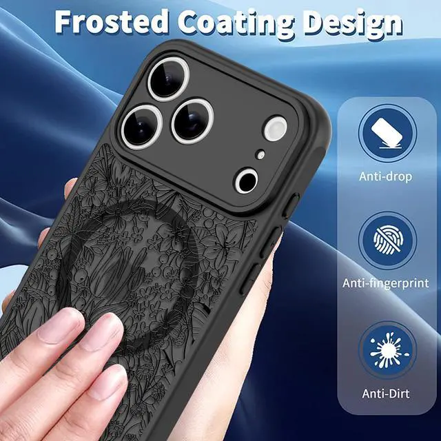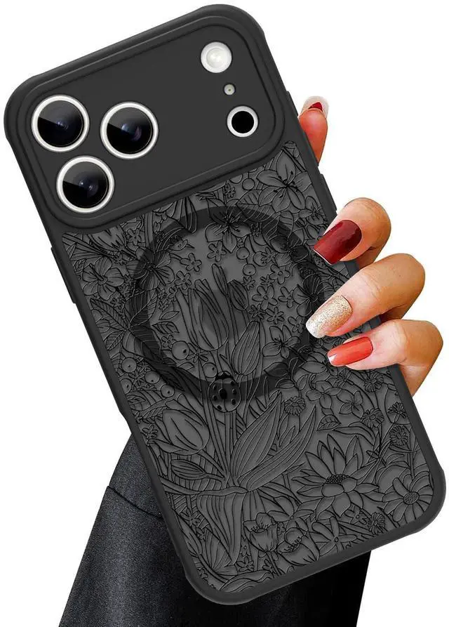 Magnetic Case for iPhone 17 Pro (6.3") with Screen Protector, Cute Floral Design for Women & Girls, [MagSafe Compatible] Slim Translucent Matte Black Cover, Camera Protection, Chic & Stylish