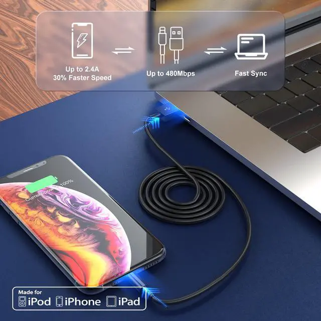 ![Alt view image 5 of 7 - [3Pack]Apple Chargers for iPhone 12 11 Charger Cable 10ft,[Apple MFi Certified]Apple Charging Cord 10ft Lightning to USB Cable 10 Foot, Fast Phone Charging Cord for iPhone 12 Pro Max/11/10/X/XRBlack](https://c1.neweggimages.com/productimage/nb640/C5U4D2603230F6T743E.jpg)