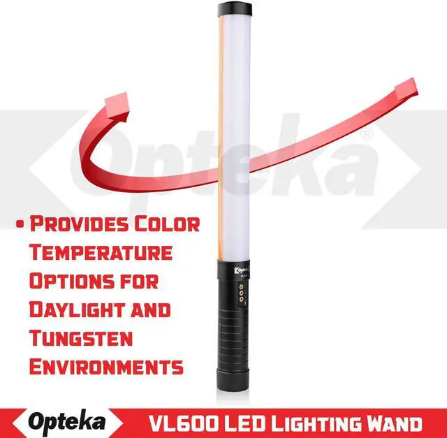The Opteka VL600 is a dimmable, 5,600k / 3200K LED source unlike any you've ever seen. The first thing that occurs to you as work with it is that it resembles a 22" lightsaber or perhaps wand is more appropriate given the soft light magic that the light conjures. Hold it as close as you want to your subject; the closer you get the more the VL600's quality of light becomes evident. Since it's virtually heat-free you never have to worry about injuring the talent or damaging the set. Power comes from a removable battery that will run for 3 hours on a 2.5 hour charge. While the ergonomic shape easily lends to handheld operation, there's a 1/4"-20 tap at one end and a hook on the other to mount the VL600 to a light stand or other accessory.