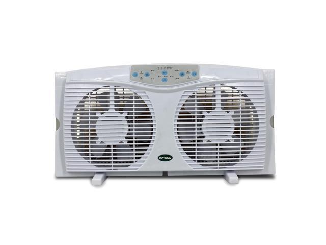 Optimus F-5286 8 Reversible Twin Window Fan with Thermostat
