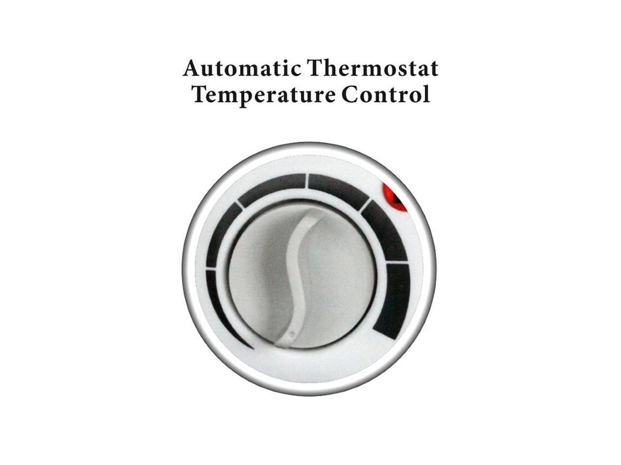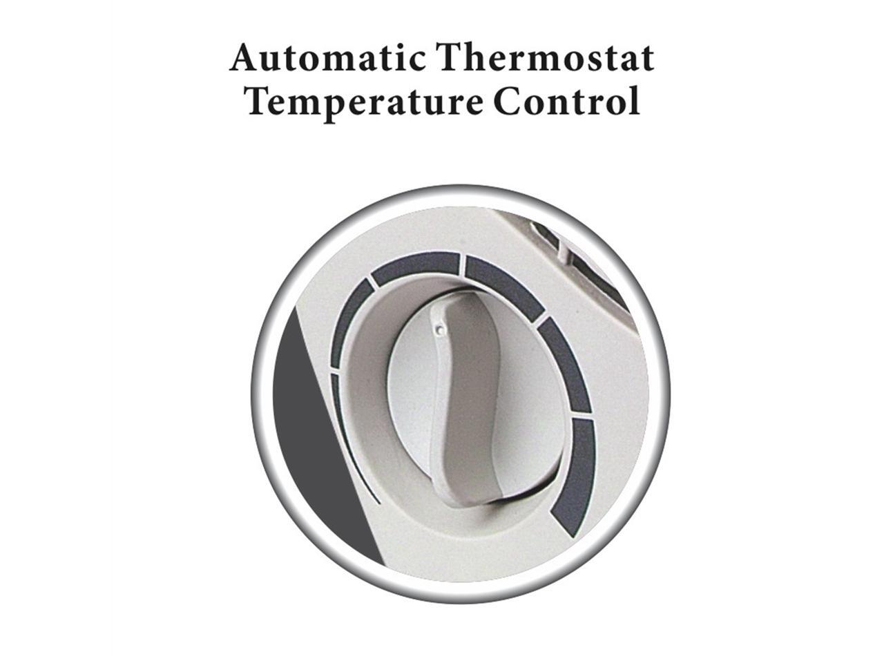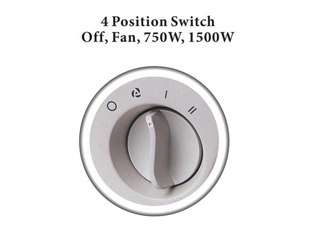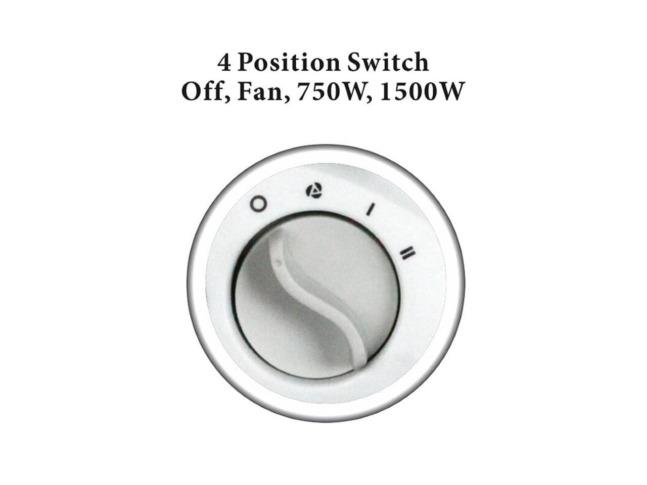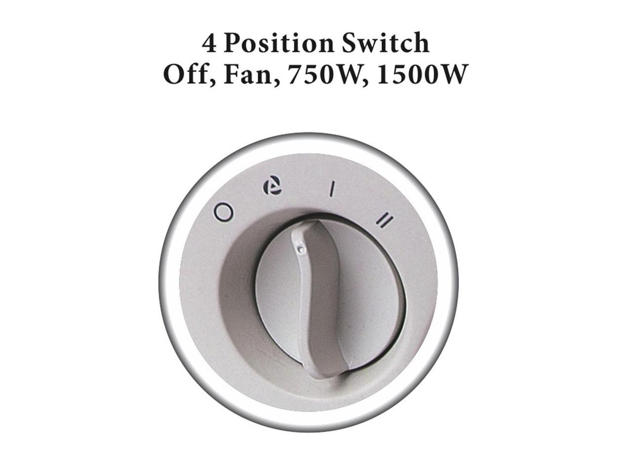 3 Heat Settings (750 and 1500 watts) Automatic Thermostat Control 5 Position Function Switch (Off, Fan, Lo, Hi) Thermal Cut-OFF, 750 watts, 1500 watts