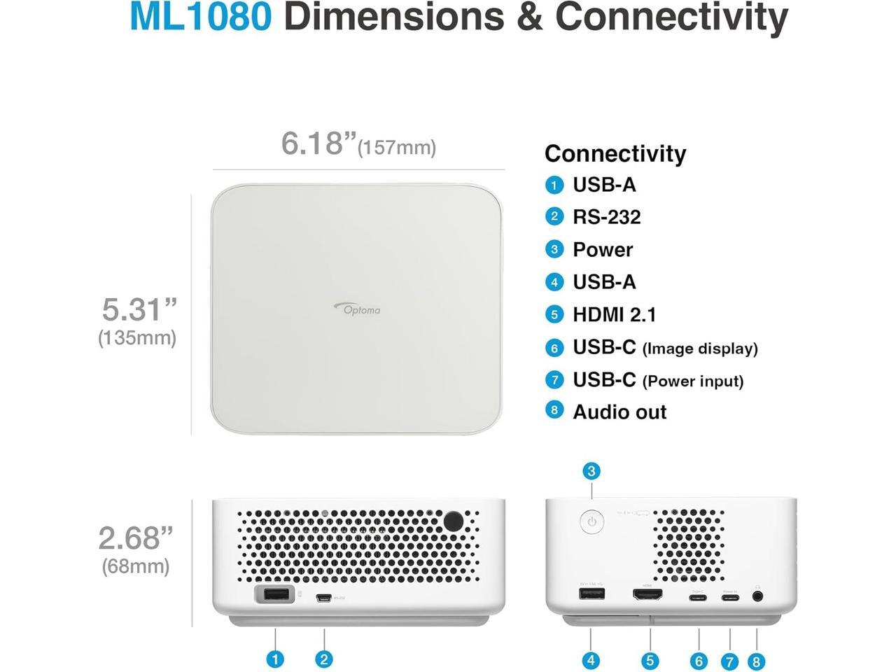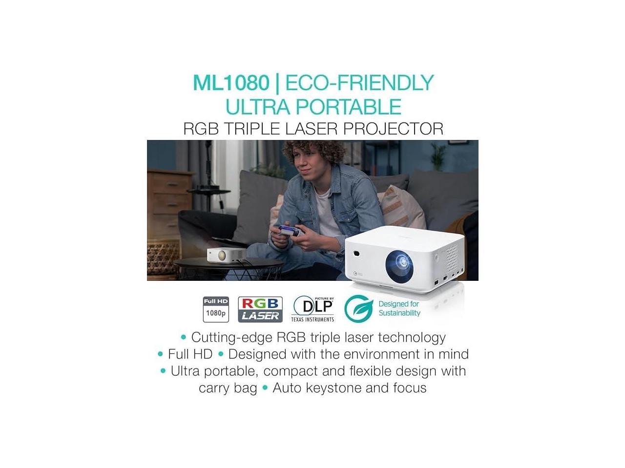 - Optoma ML1080 Full HD Ultra-Portable RGB Triple Laser DLP Projector - Remote Control - Power Cable - Power Adapter - Carry Bag - User Manual - Optoma 1 Year Limited Warranty