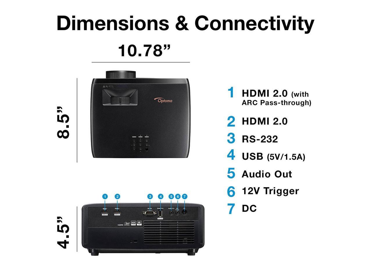 Optoma 3,500 lumens UHZ36 Home Entertainment 4K UHD Laser Projector - Black
