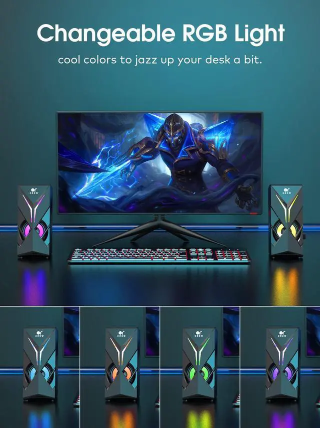 - computer speaker adopts RGB lights .Lights automatically change with music or playback ,It provides attractive atmosphere while playing games or listening to music, Increase your experience.