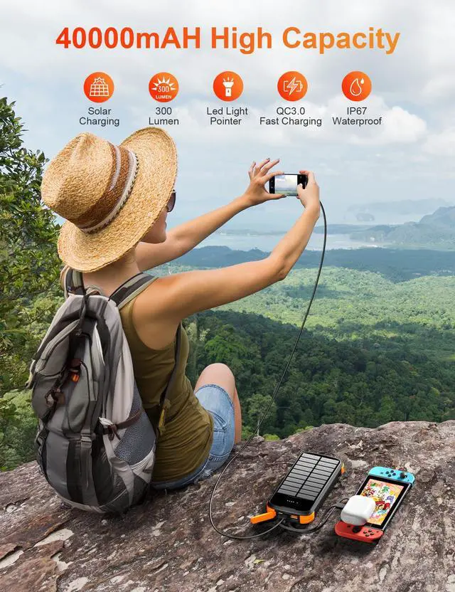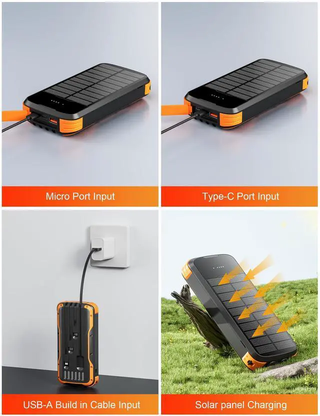 Place solar panel in direct sun (avoid extreme heat to protect battery; and solar charging power Max 1.65W, recommended for emergency use only). It will automatically use sunlight to charge, with a green indicator light signaling it's charging