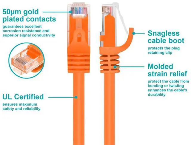 Monoprice Cat5e fixed length network cables are the perfect combination of value and performance. Available in a large assortment of colors and lengths, we have a cable to fit every situation. Each cable is made of 24AWG stranded pure bare copper conductor pairs with 50m gold plated contacts (short body). Most budget cables skimp with only 10m. Each cable features color matched, snagless strain relief boots. Monoprice Cat5e and Cat6 cables are made of 100 Percent pure bare copper wire, as opposed to copper clad aluminum (CCA) wire, and are therefore fully compliant with UL Code 444 and National Electrical Code TIA-568-C.