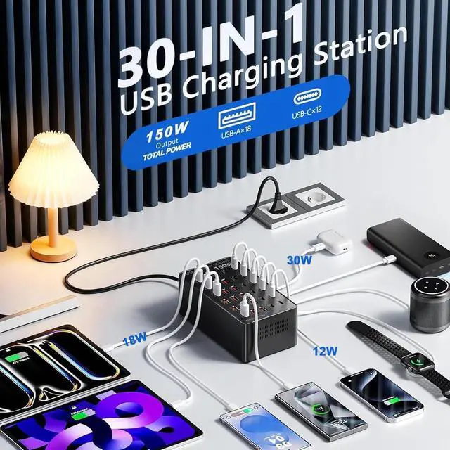 30-port charging station Compatible with the following devices