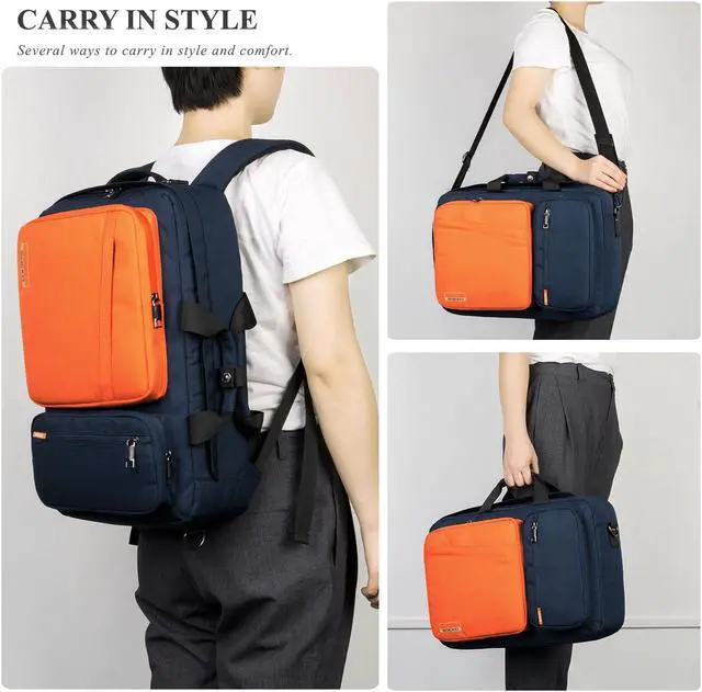 Convertible -- This multifunctional backpack features a top carry handle, a side carry handle and two hidden adjustable/detachable shoulder straps to offer multiple carrying options. With the buckles and hooks, you can convert it to backpack or single shoulder bag or briefcase according to your requirement.