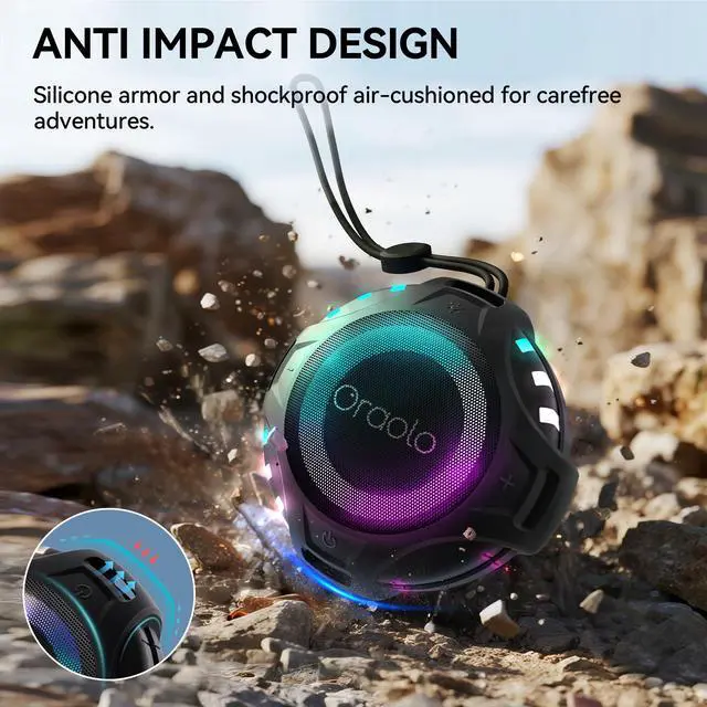 The Bluetooth speaker comes with a portable lanyard and features a skin-safe silicone design that combines comfort and practicality, making it an ideal companion for traveling or hiking.