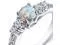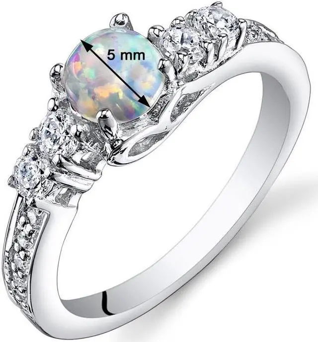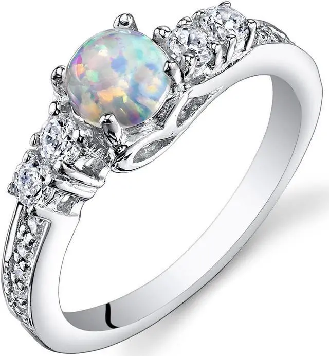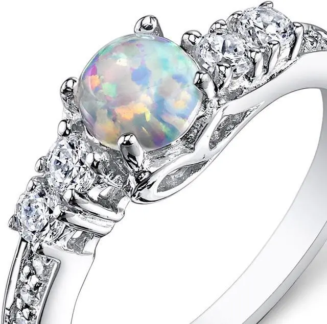 Gemstones: Lab Created White Opal, Round Cabochon Shape, 5mm, shimmering multi-color hues, 0.50 Total Carat Weight. 16 pieces super sparkling white cubic zirconia.