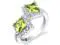 Its hip to be square. This ring offers twice the glam with its two genuine Peridot gemstones offsetting each other for an edgy visual effect. Both cool olive green stones are faceted for unparalleled light performance, and twinkling Cubic Zirconia accents adorn each square halo and cascade down the shingle shanks. Conflict-free, ethically sourced genuine gemstones only. Attractively boxed for easy gift giving.