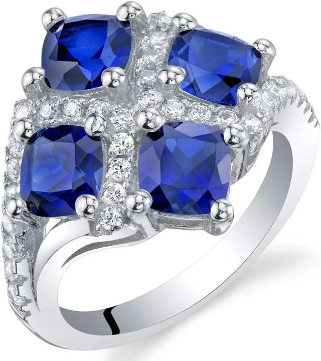 Features 2.50 carats total weight of Four 5mm cushion-cut lab-created Blue Sapphires - Cut-by-hand facets for visually appealing dimension