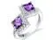 Its hip to be square. This ring offers twice the glam with its two genuine Amethyst gemstones offsetting each other for an edgy visual effect. Both vibrant purple stones are faceted for unparalleled light performance, and twinkling Cubic Zirconia accents adorn each square halo and cascade down the shingle shanks. Conflict-free, ethically sourced genuine gemstones only. Attractively boxed for easy gift giving.