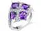 Enjoy the wear-anywhere appeal of this inviting ring that showcases four genuine Amethyst gemstones set in a quad style. A slight conical shape gives it a one-of-a-kind look that draws attention. Each stone is offset by dazzling icy white Cubic Zirconia accent stones. Only ethically sourced, conflict-free genuine gemstones are used. Includes a box for easy gift giving.