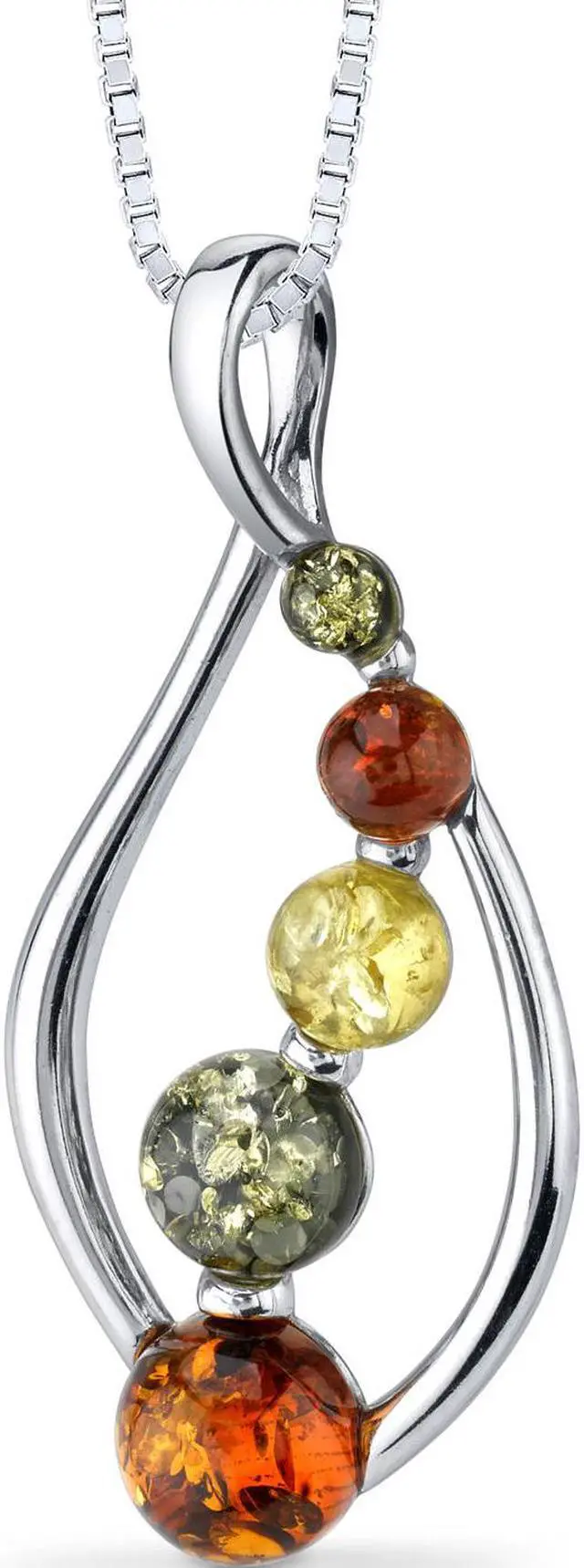 Genuine Baltic Amber, 5 pieces round shape, rich cognac, olive green and honey yellow.