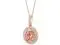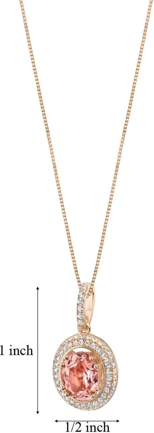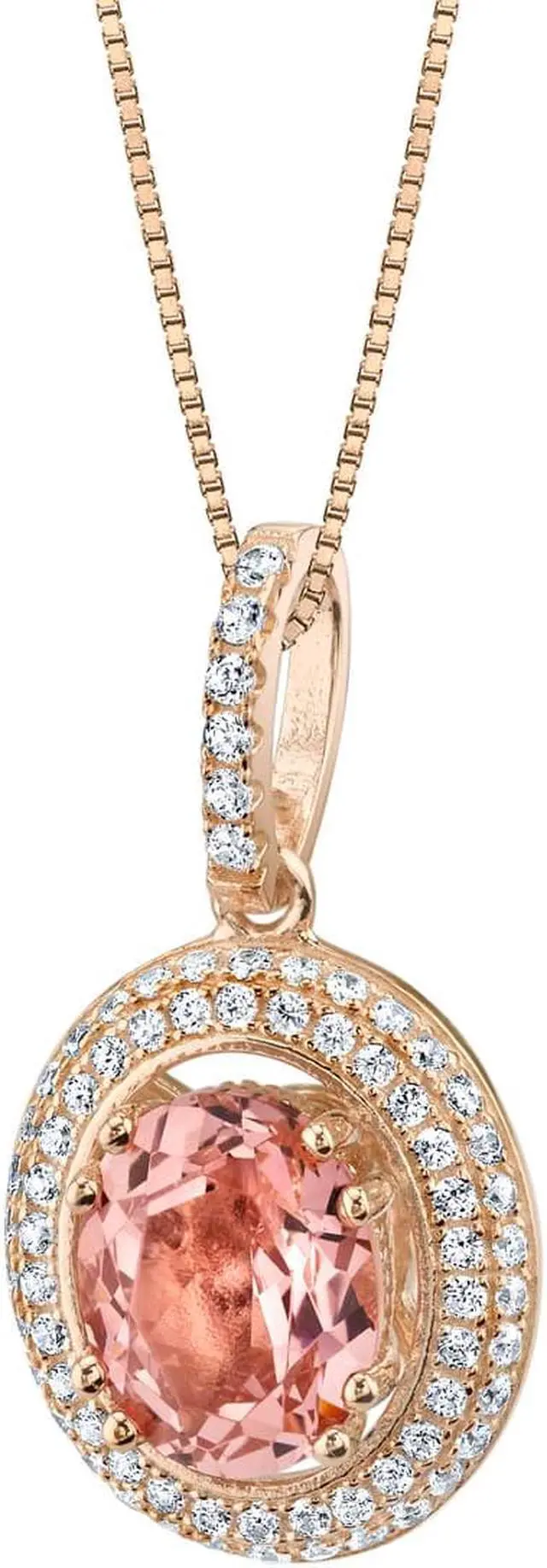 Perk up any outfit with this pendant necklace in a subtle pink hue from a simulated morganite gemstone. With tons of twinkle from icy white cubic zirconia, the bail and halo create a wonderful dramatic effect. Hand-cut facets on the oval center bring out its brilliance while adding symmetry to the overall look. Attractively boxed for easy gift giving.