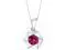 Light up the room with this unique pendant necklace. Its play on circles is mesmerizing with a deep red, created Ruby set inside a square-edged circle of textured Sterling Silver. Handcut facets offer unparalleled light performance and depth in color. Attractively boxed for easy gift giving.