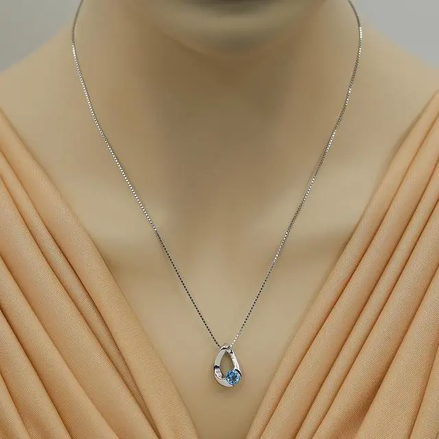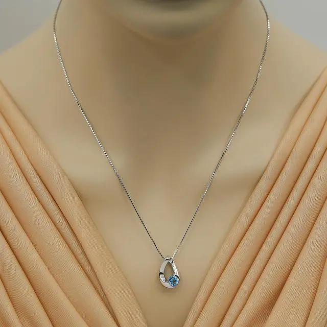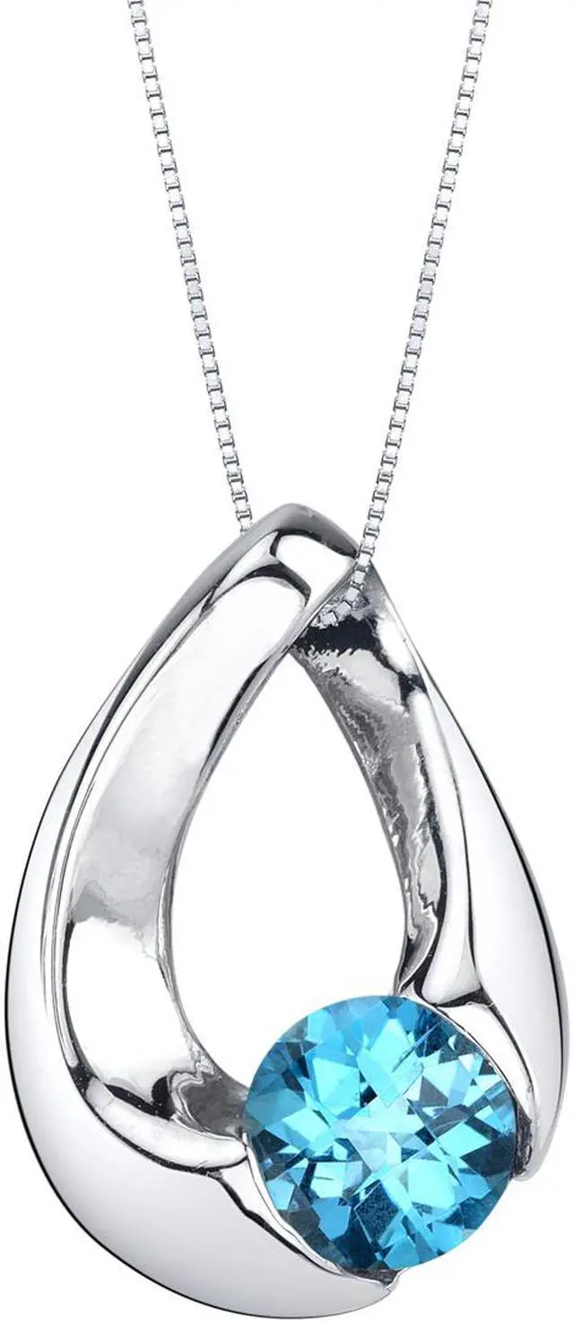 Expect out-of-this-world class with an orbital pendant necklace that showcases a fresh sky blue, genuine Swiss Blue Topaz gemstone. It sits within an oval frame of twisted Sterling Silver and glistens from an abundance of handcut facets, creating plenty of interesting color, texture and character. Conflict-free, ethically sourced gemstones only. Includes a box for easy gift giving.