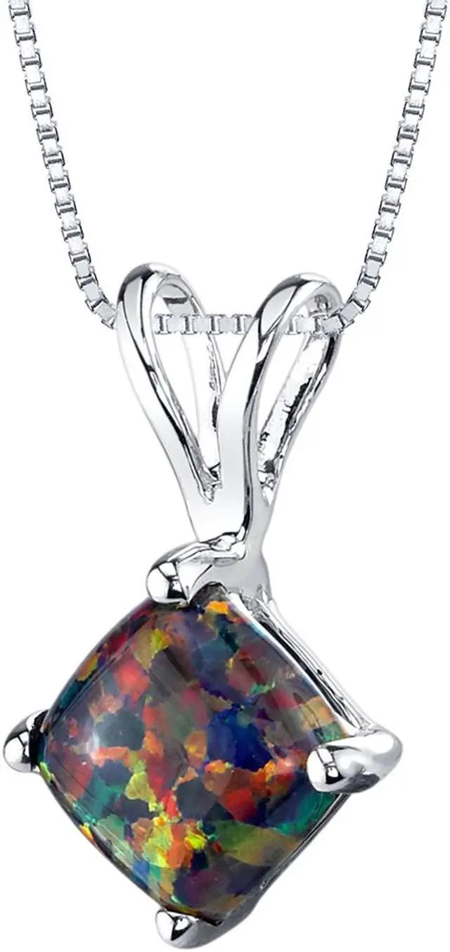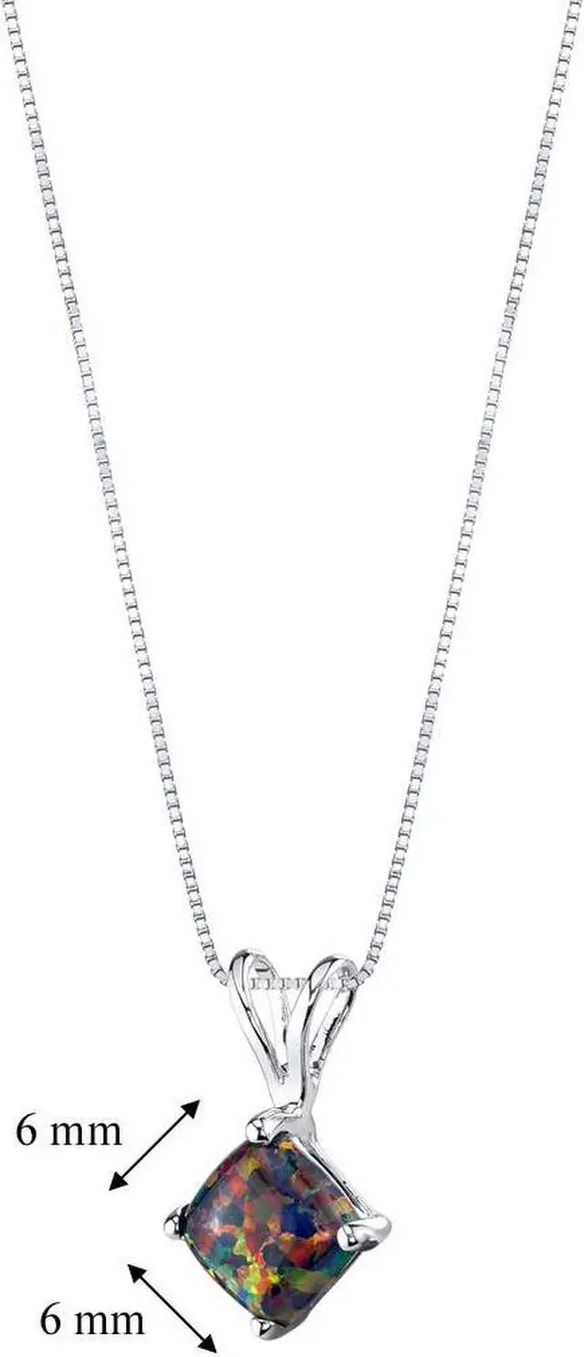 Gemstone: Created Opal, Cushion Cut, 6mm, 0.50 carat, iridescent black color with Brilliant Sparkle.