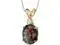Gemstone: Created Opal, Oval Cut, 10x8 mm, 1.00 carat, iridescent black color with Brilliant Sparkle. 0.05 carat genuine Diamond with H-I color and SI-I clarity.