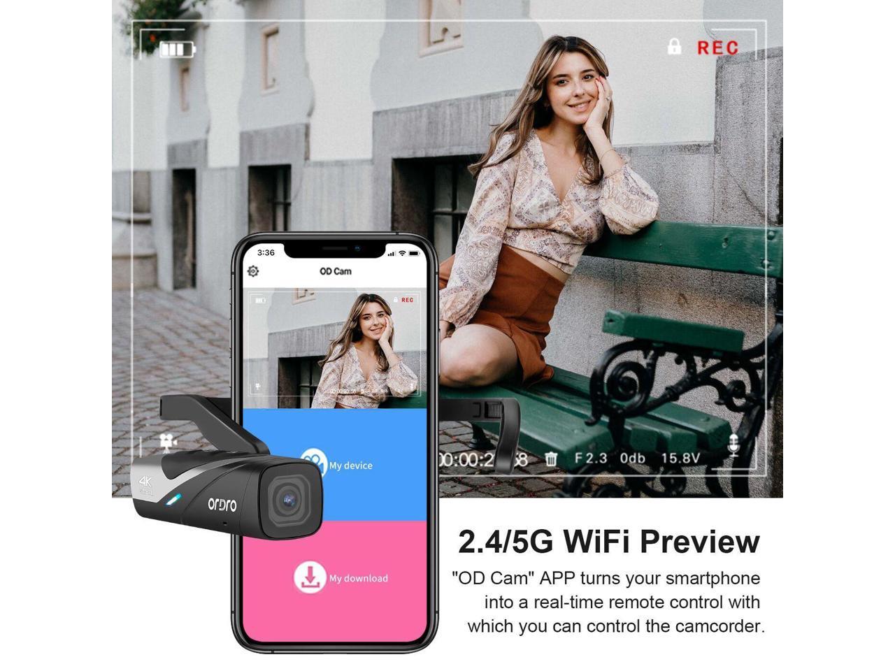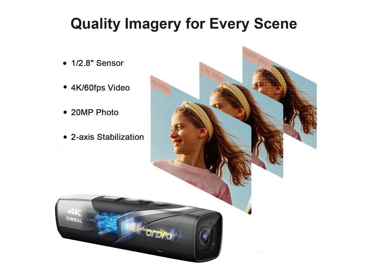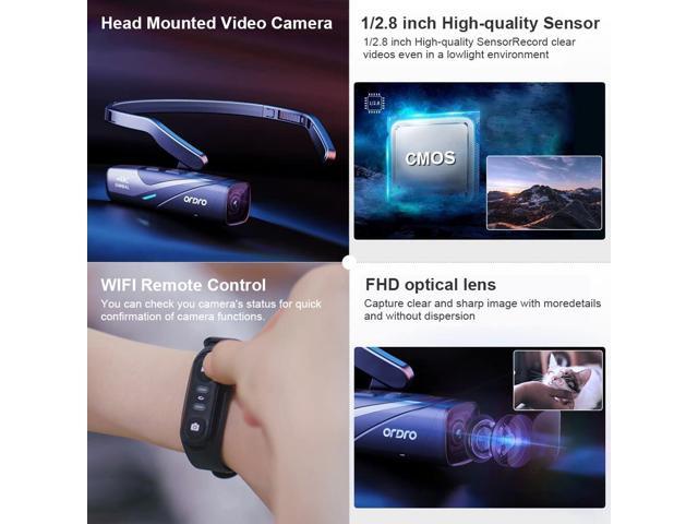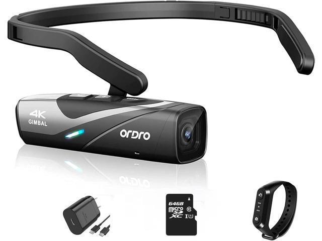ORDRO EP8 4K Head-Mounted Video Camera, Ultra HD 4K 60FPS Camcorder Vlog Hands Free Wearable Camera, Has 2-Axis Gimbal Video Stabilizer, Wi-Fi APP, Auto Focus with Remote Control,64G Micro SD Card