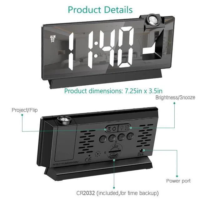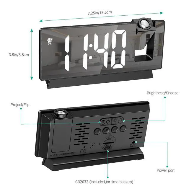 NOTE: This projection alarm clock needs to be plugged in all the time. The built-in battery is used only as a memory function.