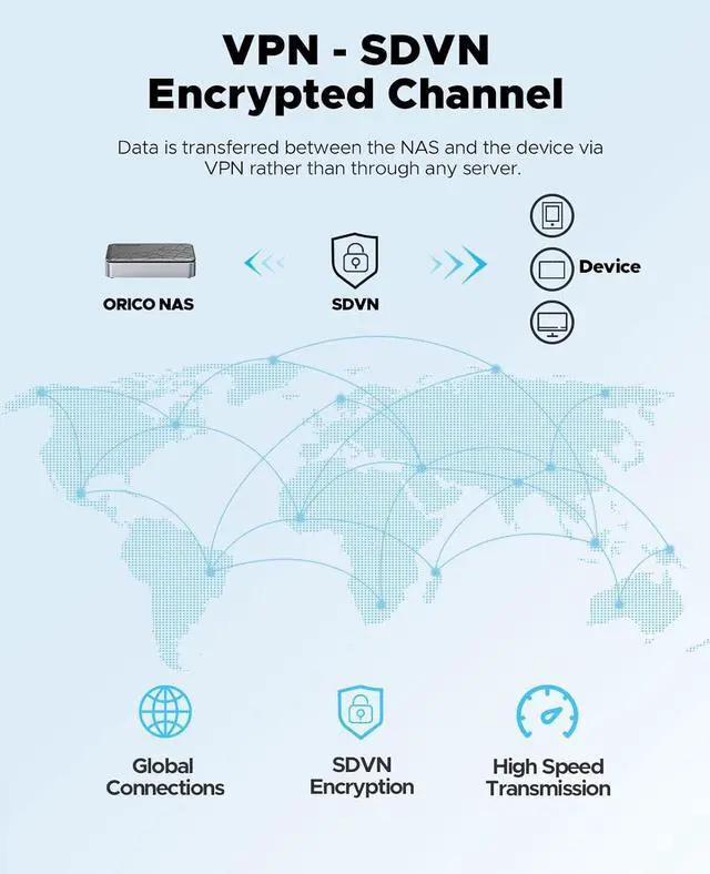 • VPN Exclusive Channel: The SDVN technology used by Weline establishes an encrypted channel between devices and nas server, and remote access through VPN.