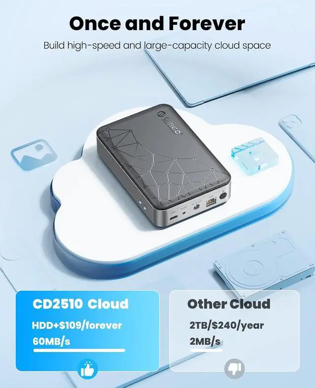 Safely store photos, videos, movies, up to 8TB(15mm 2.5" SATA HDD/SSD). Separate privacy from shared content.