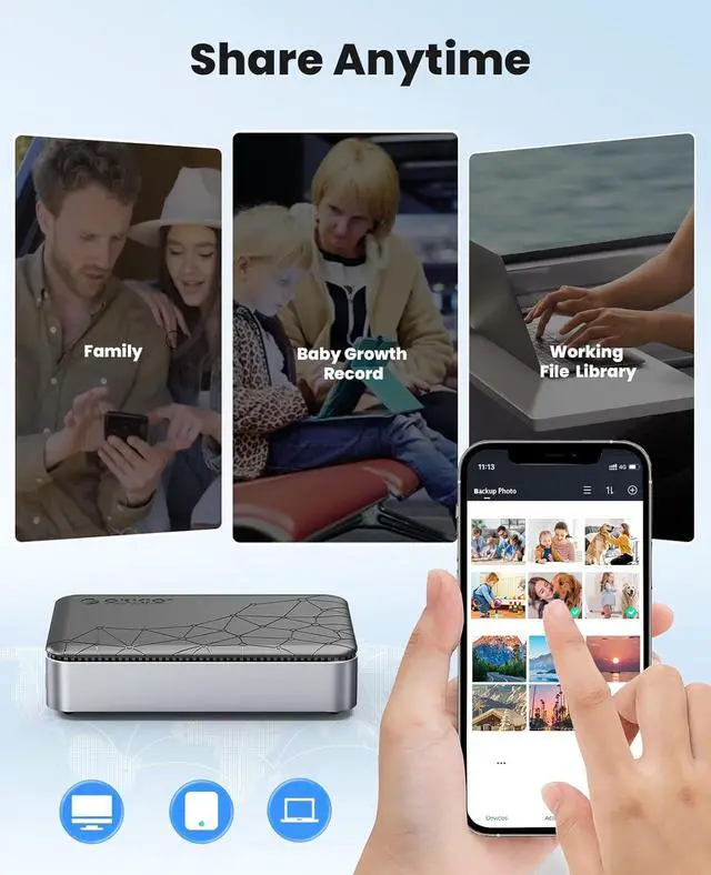 Share photos and videos to different devices and systems anytime, anywhere without paying any monthly fees.