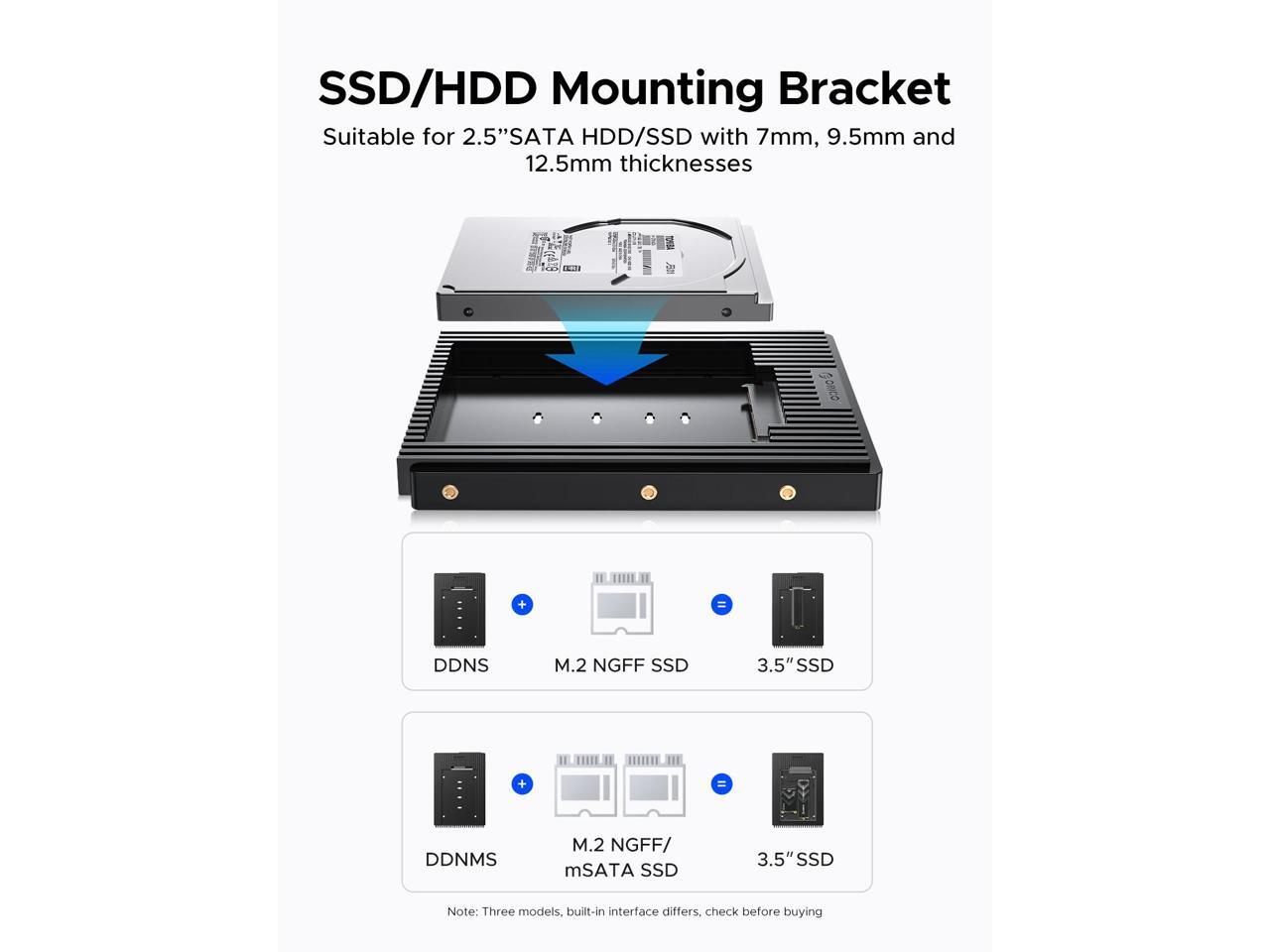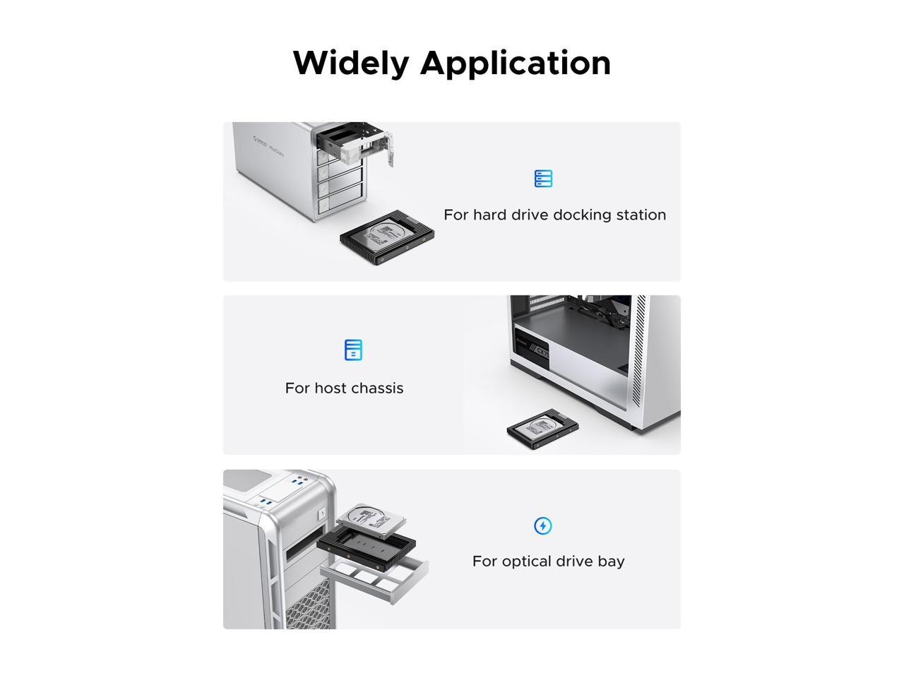 - Support 7 / 9.5 12.5mm 2.5 inch SATA HDDs SSDs