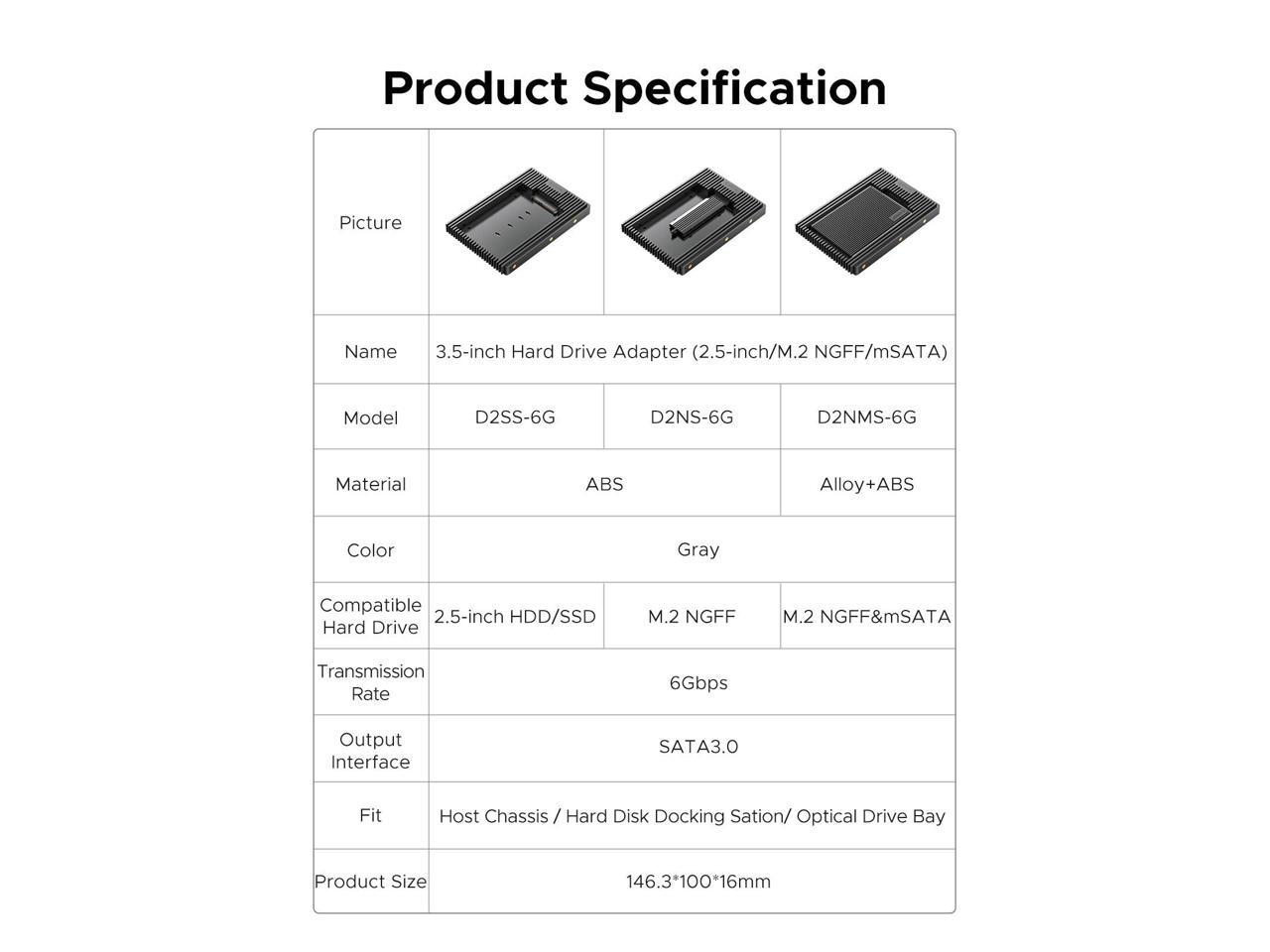 ORICO M.2 NGFF SATA to 3.5 Hard Drive Adapter Internal Drive Bay Converter Mounting Bracket Caddy Tray -D2NS