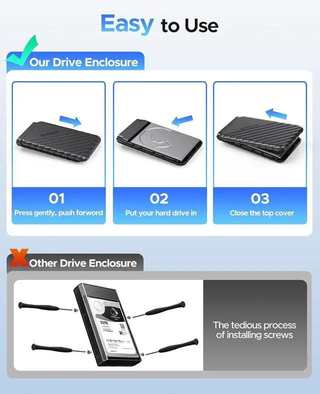 ![Alt view image 6 of 7 - ORICO 2.5 inch External Hard Drive Enclosure USB 3.0 to SATA III for 7mm and 9.5mm SATA HDD SSD Tool Free [UASP Supported] Black (25PW1-U3)](https://c1.neweggimages.com/productimage/nb640/A1DSS2512030KEV1RA8.jpg)