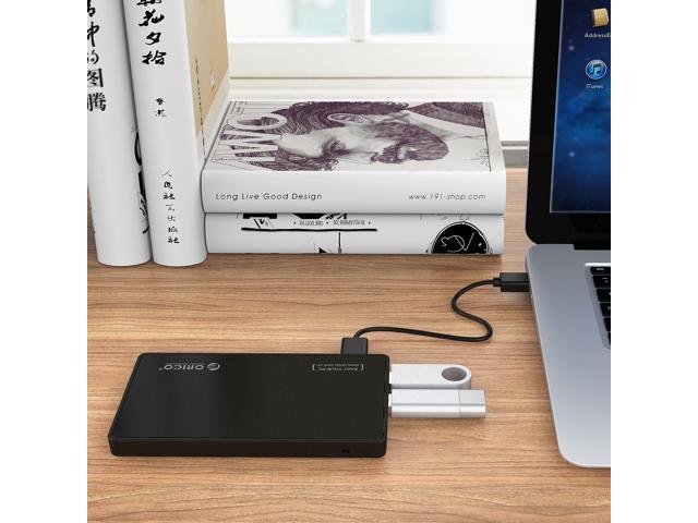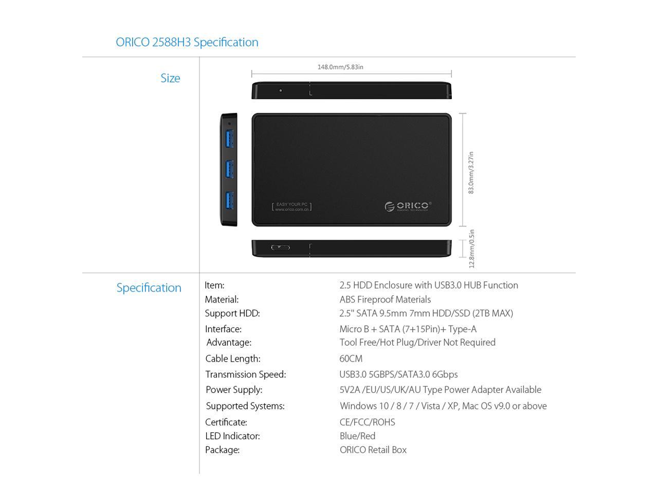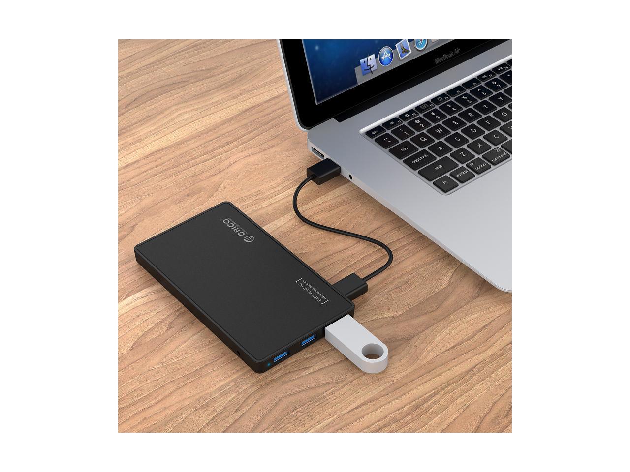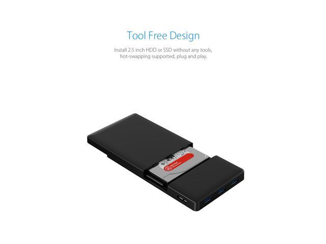 [Tool-less Design with 3 USB3.0 Ports] ORICO 2.5 inch USB3.0 SATA External Hard Drive Disk Enclosure Case for 9.5mm 7mm SATA/HDD/SSD with 3 Ports USB 3.0 HUB UASP Supported 5V2A Power Adapter