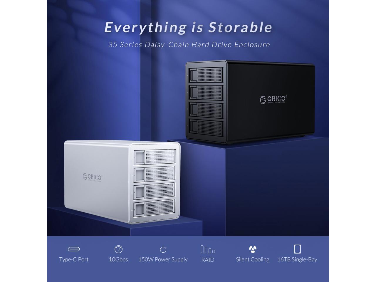 - Daisy Chain Expansion: The ORICO external hard drive enclosure supports daisy-chaining, allowing you to connect additional units to expand your storage capacity. With this feature, you can reach a maximum capacity of up to 192TB by connecting three devices with 64TB each.