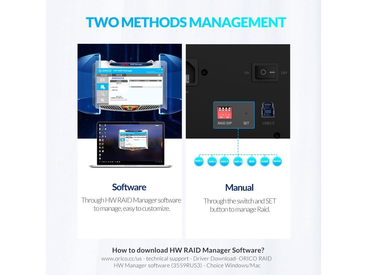- support multiple RAID modes includes RAID 0, RAID 1, RAID 5, RAID 10, JBOD, CLONE and Normal